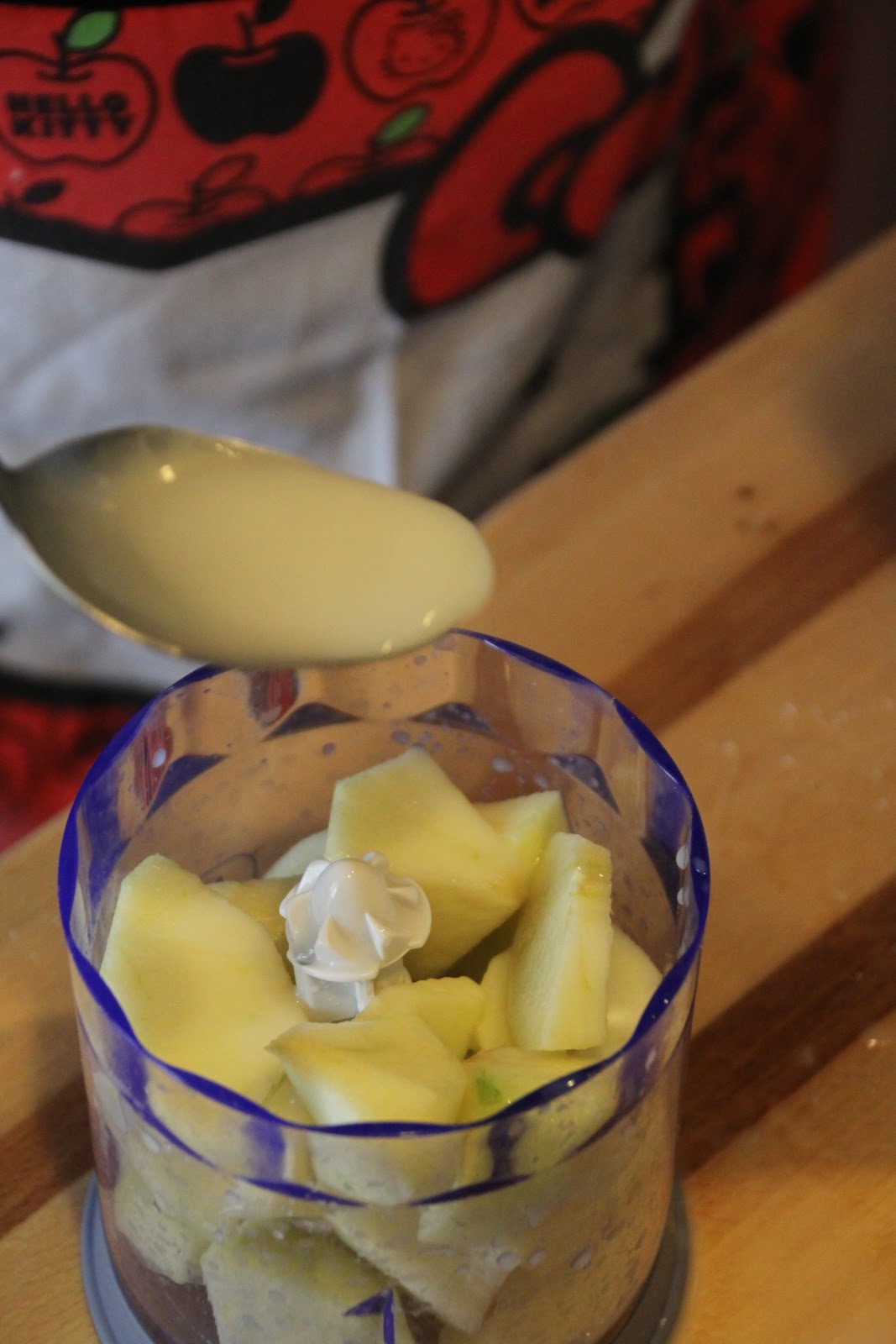 4. Nel frattempo tritate le mele grossolanamente per il ripieno e scottarle per pochi minuti in padella con 1 C d'acqua e la cannella , coperte con il coperchio. Una volta appassite aggiungete il malto e l'olio.