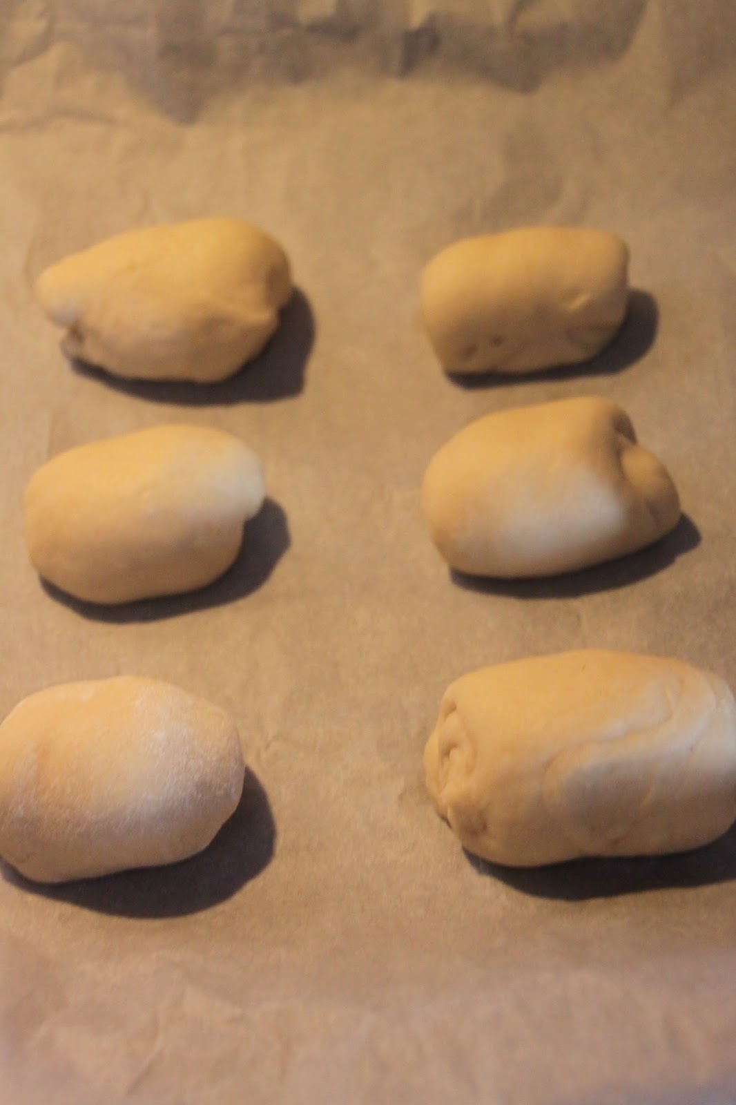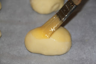 5- Quando i panini avranno lievitato, sbattete l'uovo e spennellate sopra a ciascuno