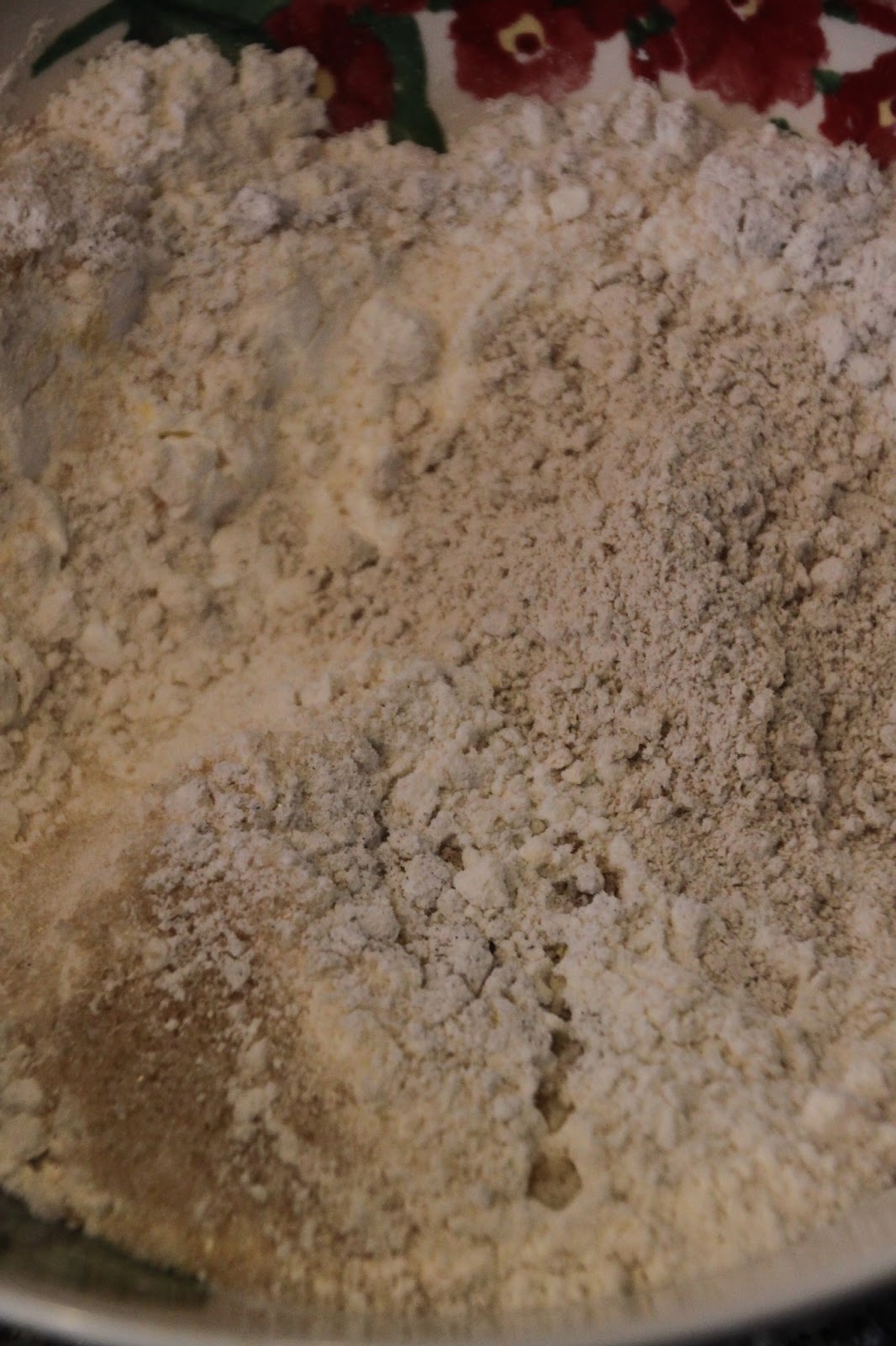 1.Mischiate in una ciotola tutti gli ingredienti secchi.