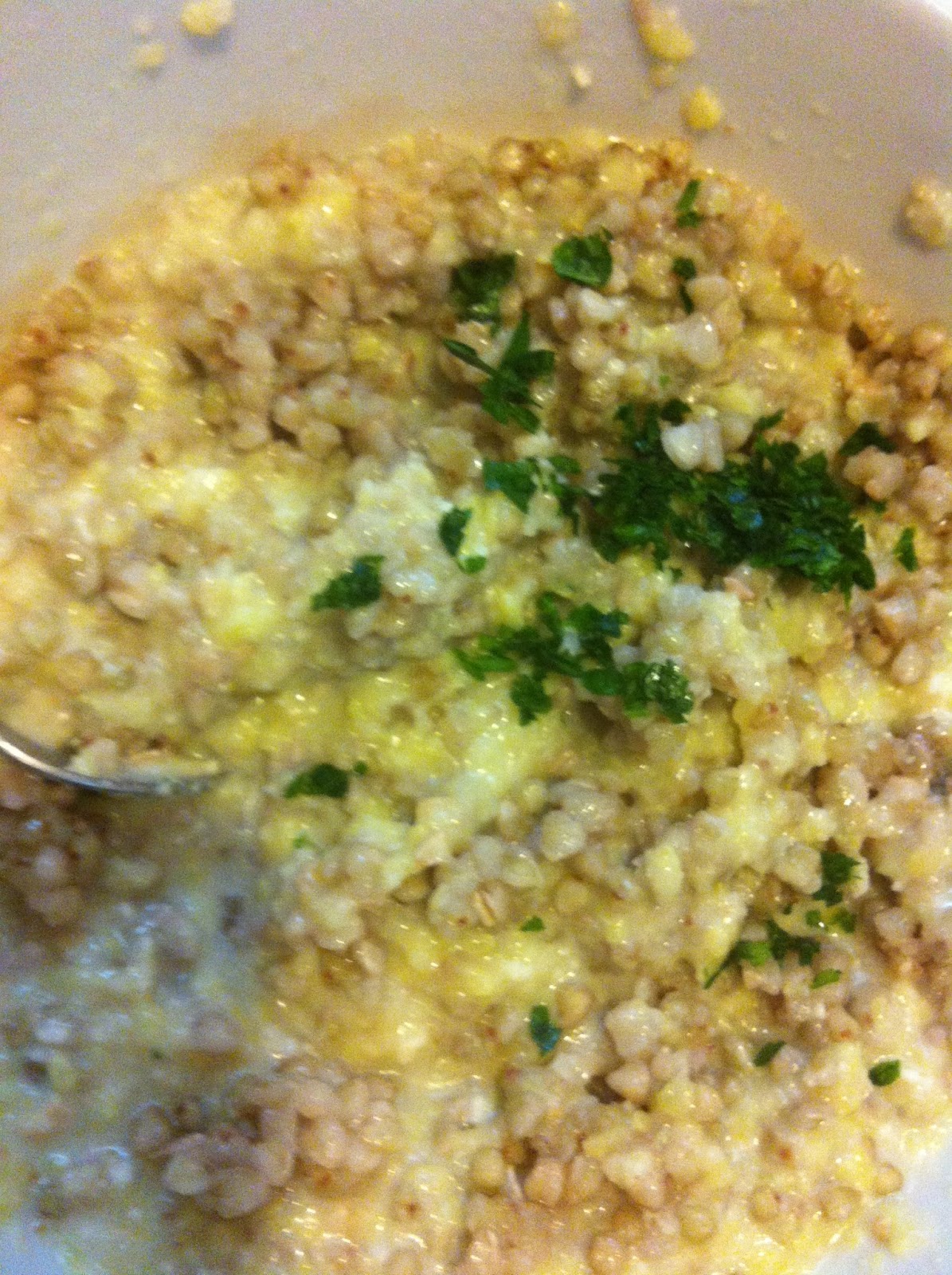 1.Lessate il grano saraceno. Bollire fino a metà cottura le zucchine lavate (per 7 minuti)