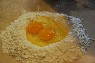 Si legge sempre e ovunque che occorre un uovo per 100 grammi di farina... ma a me non basta mai, devo sempre aggiungere un po' di acqua per far assorbire tutta la farina. Eppure uso anche uova piuttosto grandi.