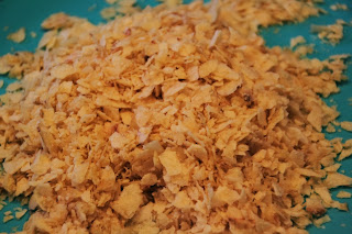 Tritate finemente ,aiutandovi con il fondo di un bicchiere , le patatine.