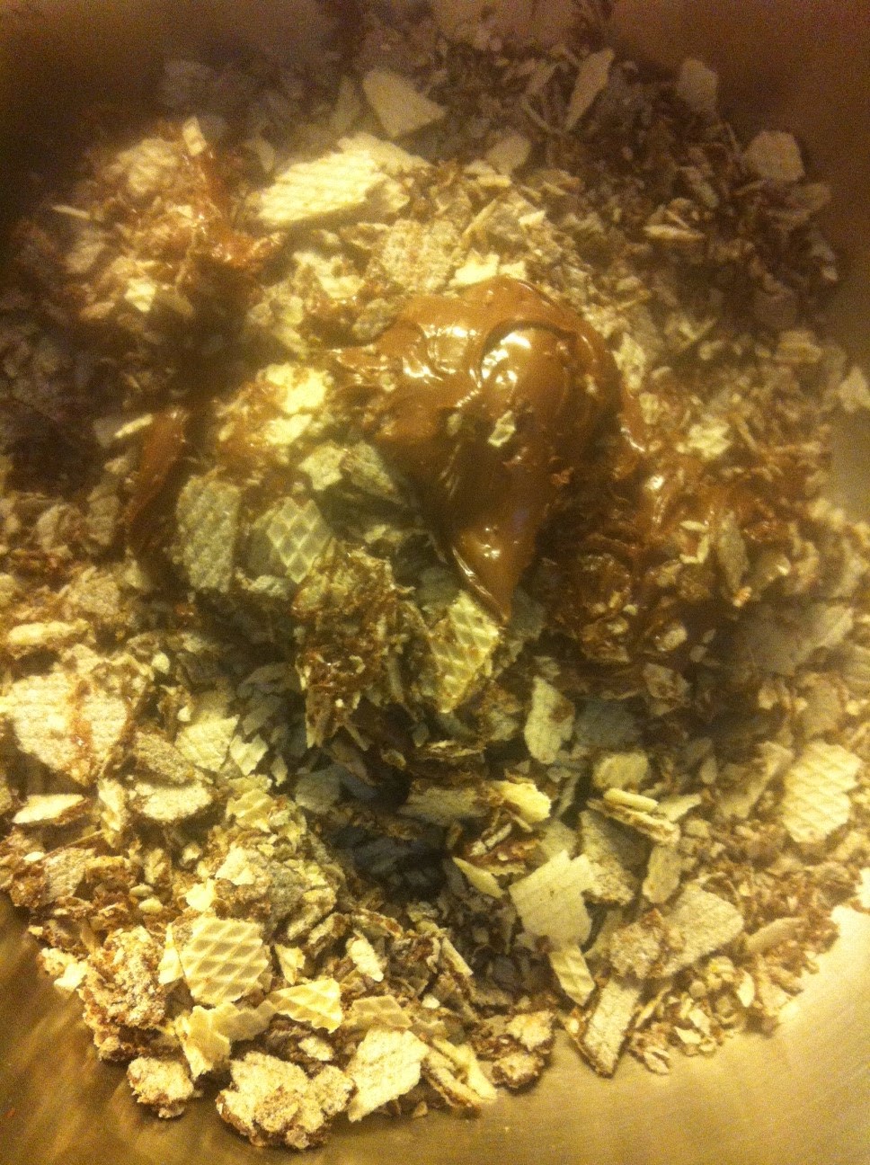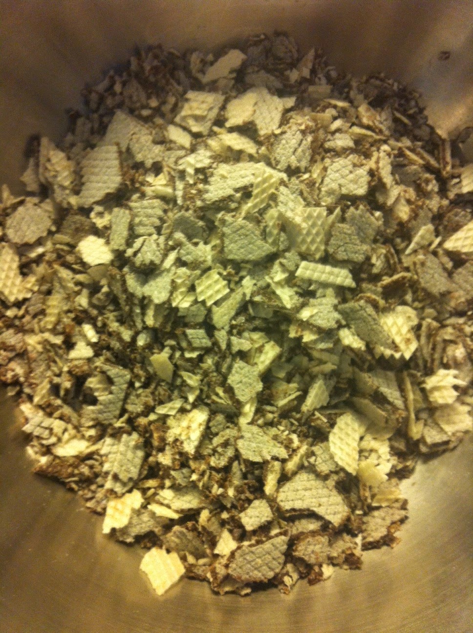 Sbriciolare grossolanamente i wafer in una ciotola capiente