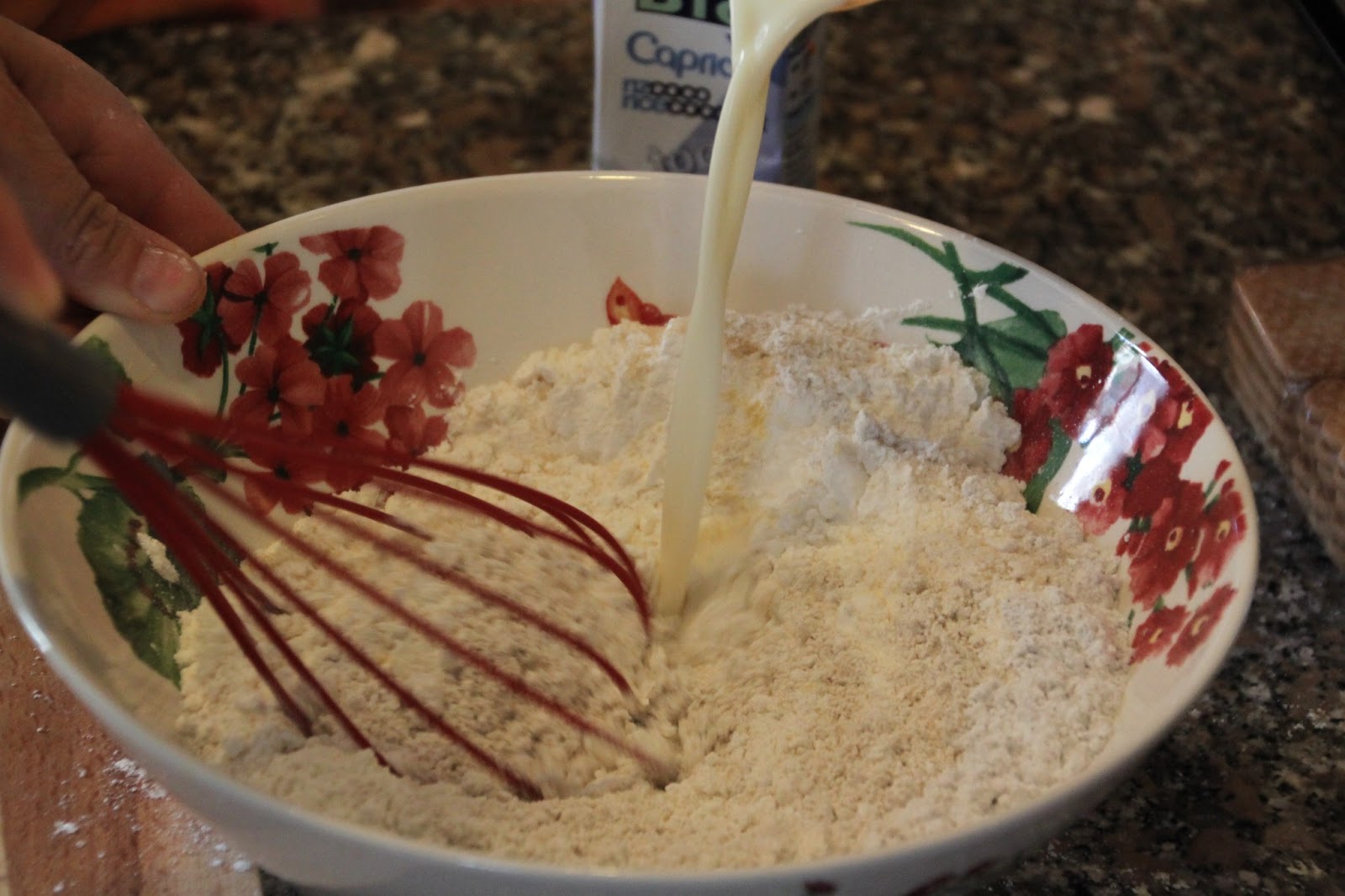 2.Iniziate ad aggiungere il latte, mescolando.