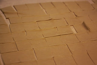 Dividetela in quadrati (2 x 2 cm ) con un coltello o con l'utensile apposito