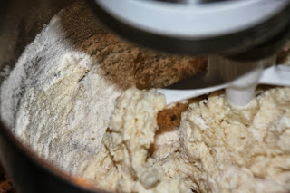Formare delle palline da 60 g l'una, lavorarle in modo da ottenere dei filoncini, successivamente arrotolare ogni filoncino così da creare una treccina