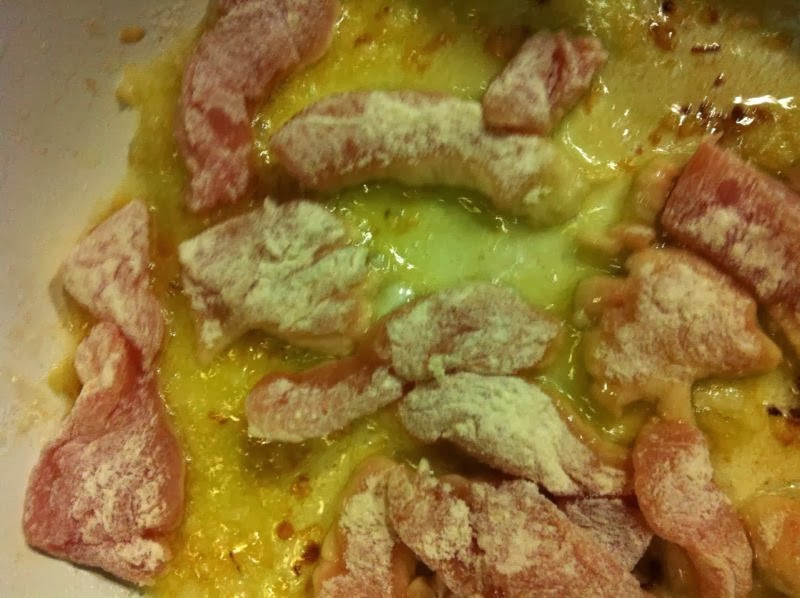 Aggiungete il pollo infarinato,salate, e fate cuocere qualche minuto.