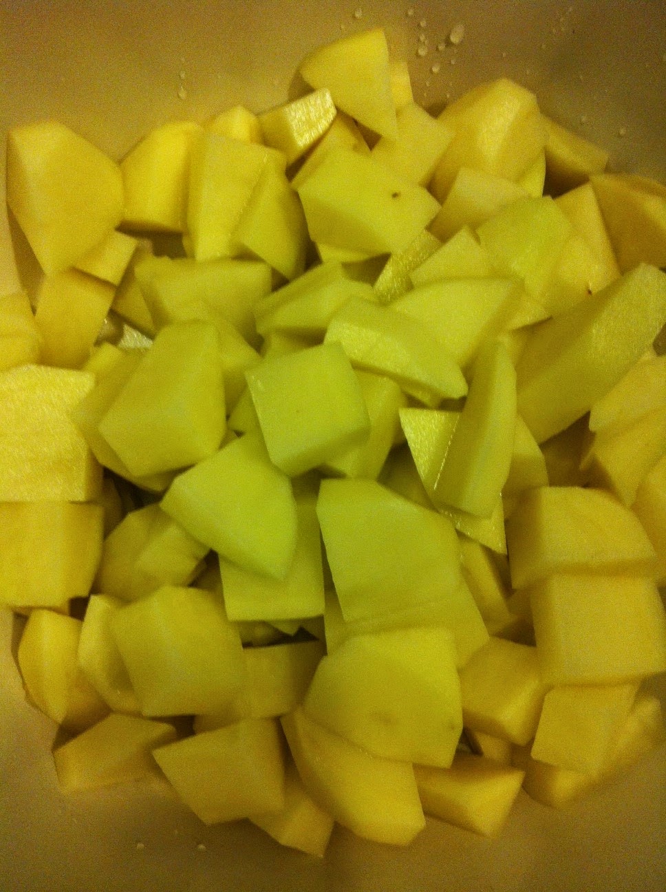 Sbucciare e in seguito tagliare le patate a dadi (della dimensione che preferite)